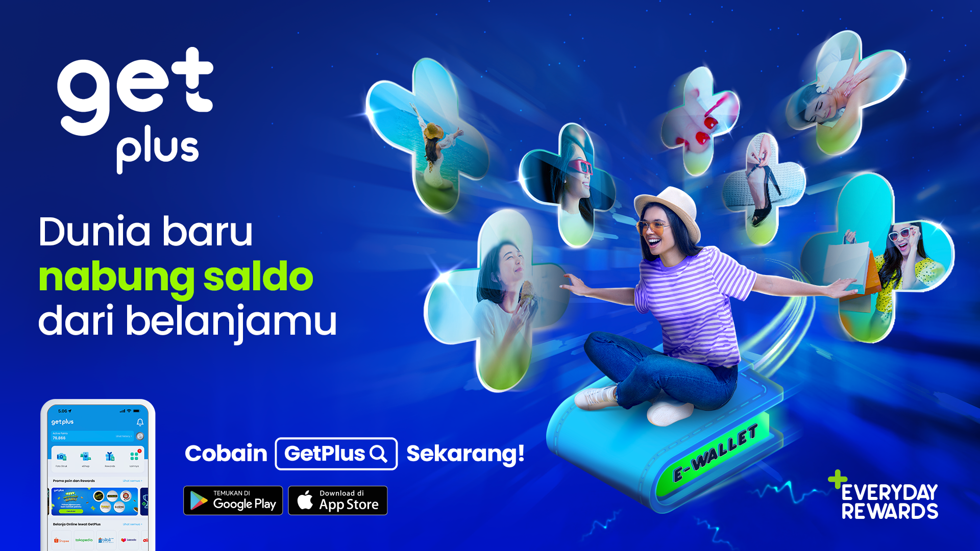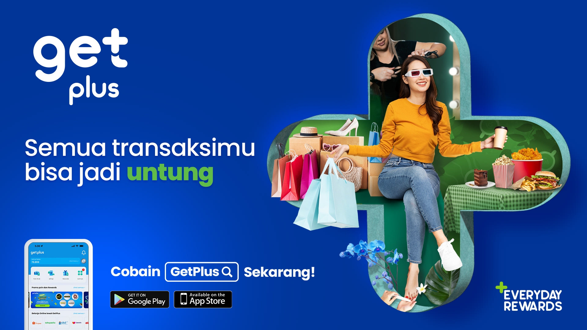 With bold colors, playful typography, and relatable lifestyle imagery, the campaign effectively highlighted the versatility and ease of using GetPlus. By showcasing how “every transaction can lead to keuntungan,” the visuals communicated a strong value proposition that resonated with digital-savvy users, helping to drive app installs and user engagement across digital channels.